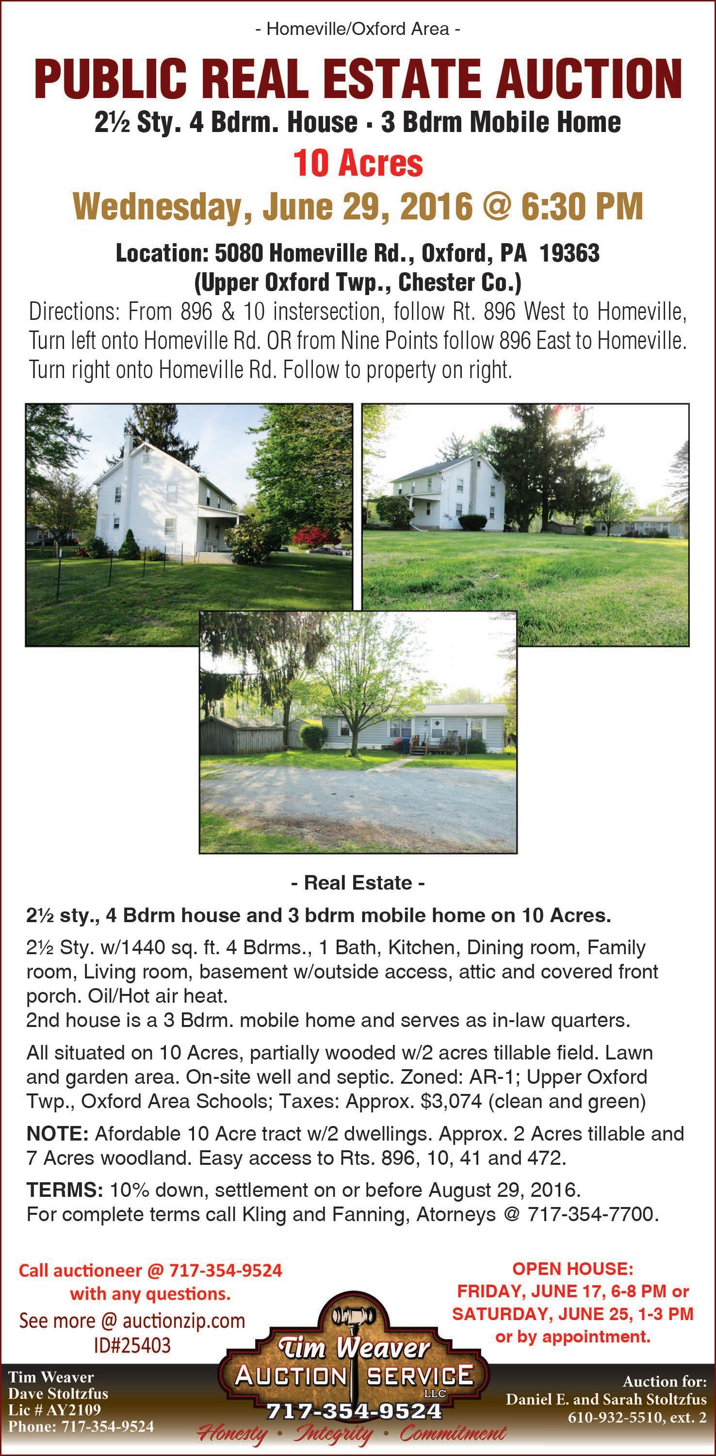 SALE ADDRESS: 370 Conner Road, Oxford, PA 19363