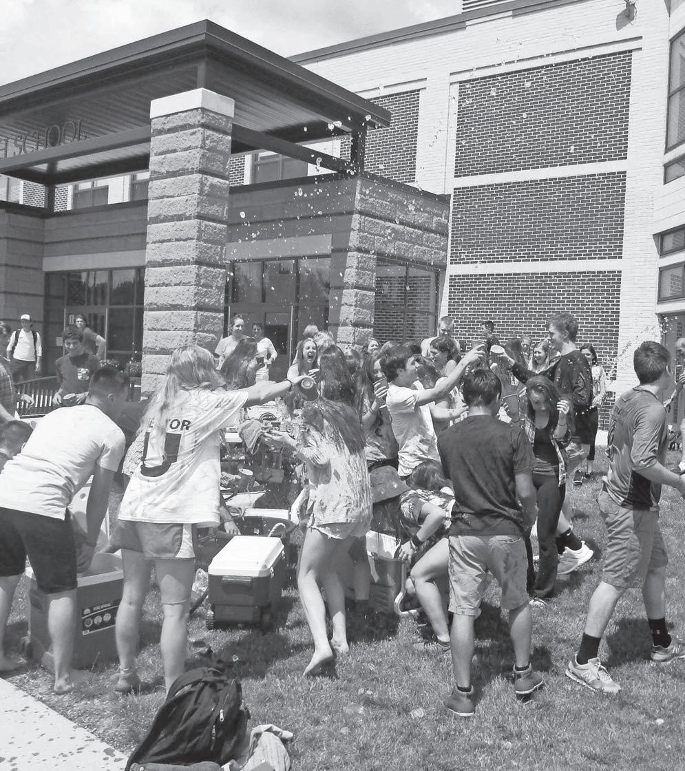 and many of the students stopped to speak to Charles Muscato, still dripping after being doused. The event raised more than $500.