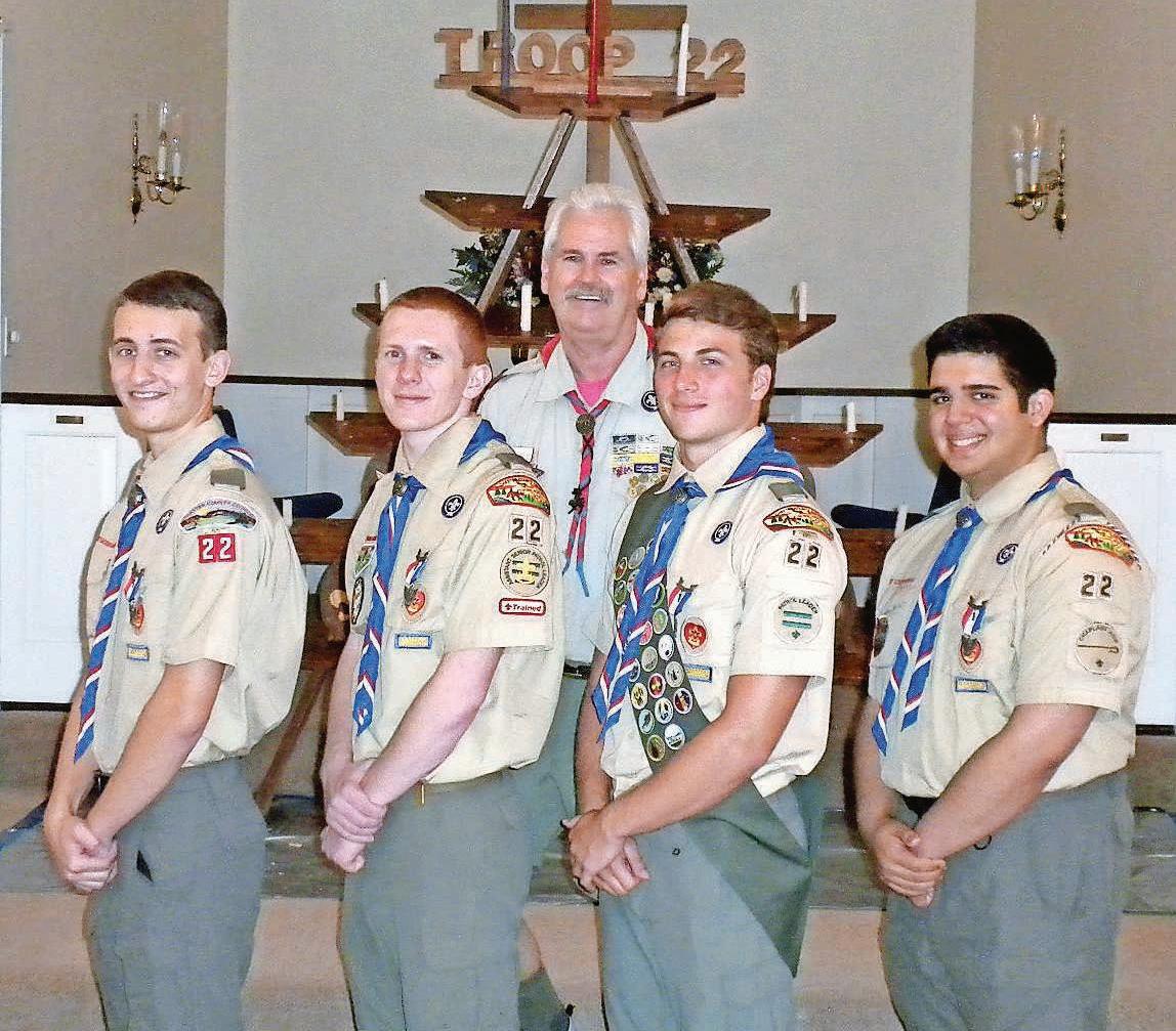 Boy Scout Troop 22 in Unionville recently honored five new Eagle Scouts -- Robert Blecher, Chris Helle, Kayzad Jokhi, Joey Stoltz and Charlie Streitwieser -- at a Court of Honor held at the Unionville Presbyterian Church.