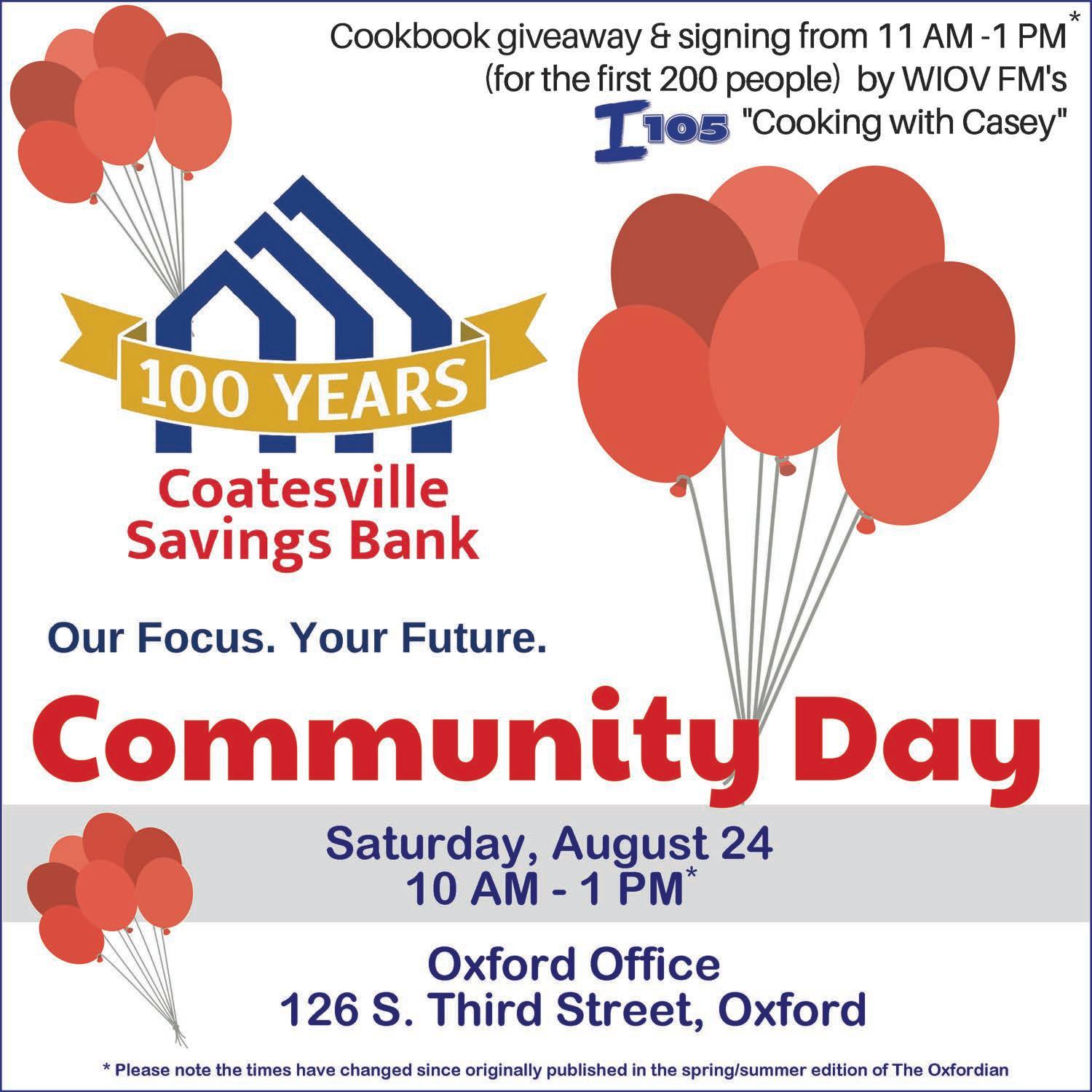 The Oxford Presbyterian Church Apple Festival in Oxford Memorial Park takes place on Sept. 28. The event takes place from 9:30 a.m. to 3:30 p.m. There will be dozens of vendors, games for children, and entertainment. For more information, visit www.opcapplefestival.org.