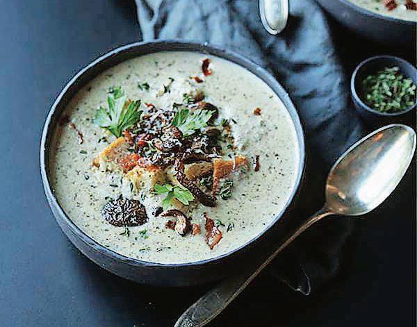 parsley, salt and pepper. 9. Garnish with croutons, crispy bacon lardons, fresh thyme and Parmesan.