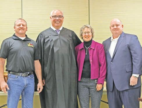 District Justice Matt Seavey, second from left, stands Jerome Fix, a new member of the Board of Auditors, and supervisors Christine Allison and Kevin Runey.