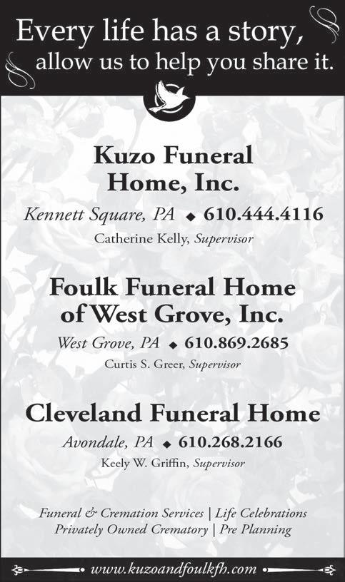 A viewing for Joe will be held at Kuzo Funeral Home, 250 W. State Street, Kennett Square on Friday, Jan. 17 from 5 to 8 p.m. On Saturday, Jan. 18, there will be a funeral mass at 10 a.m. at St. Patrick’s Catholic Church, 212 Meredith Street, Kennett Square. Interment will follow at St. Patrick Cemetery, 450 North Union Street, Kennett Square. In lieu of flowers, contributions can be made to Wounded Warriors.