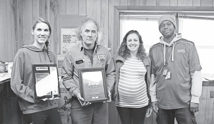 U-Haul area field manager Laura Sommerville and field relief manager Khalil Sims visited the business on Jan. 3 to present Cole with a plaque in honor of the occasion.
