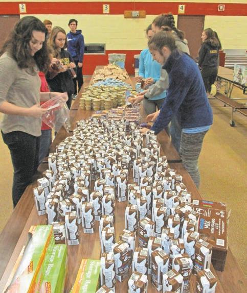 Photo by John Chambless Breakfast foods are lined up at Hillendale Elementary School, ready to be packed into kits for students in need.