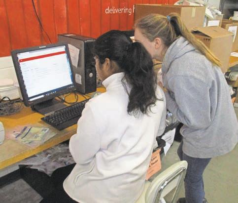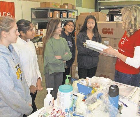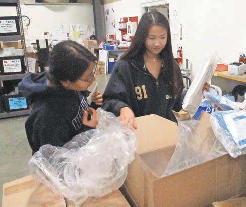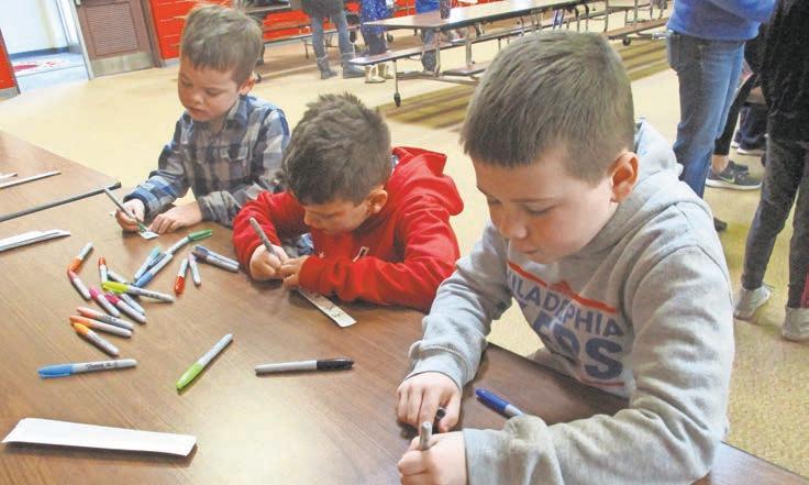 bars, milk and more put into sealed bags for distribution. With the bags quickly getting packed and completed, younger students were hard at work drawing bookmarks to be given out with the food.