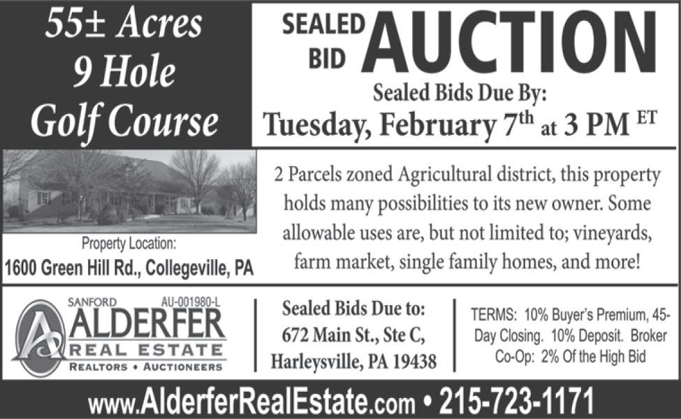 N.B. Ten percent (10%) of the purchase money must be paid at the time and place of sale. 10% payment must be paid in cash, certified check or money order made payable to the purchaser or Sheriff of Chester Co. The final payment must be made payable to Sheriff of Chester Co. & is due twenty-one (21) days from the date of sale by 2PM. CAROLYN B. WELSH, SHERIFF 1p-25-3t Sheriff Sale of Real Estate