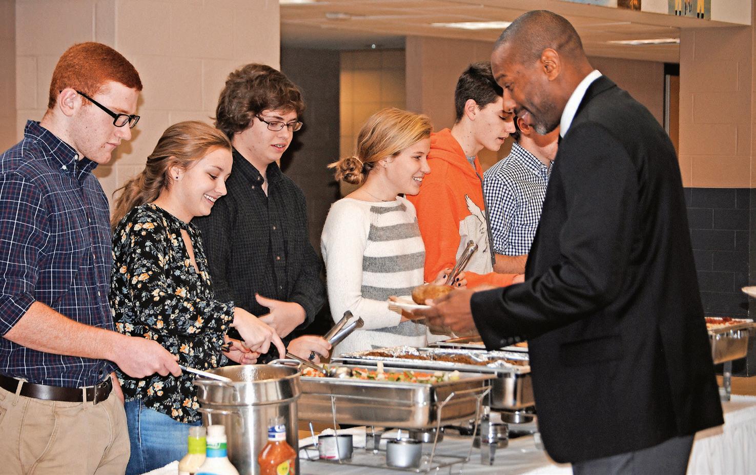 Farrell spoke briefly at the luncheon, talking about how he grew up in Oxford and went to school with some of the people in the room, and was taught by others at the luncheon. Noting the presence of a large contingent of high school students, Farrell said that it was good to have them at an event that honors the legacy of Civil Rights leader Dr. Martin Luther King, Jr. Farrell noted that the 50th anniversary of the assassination of Dr. Martin Luther King, Jr. will be in 2018.