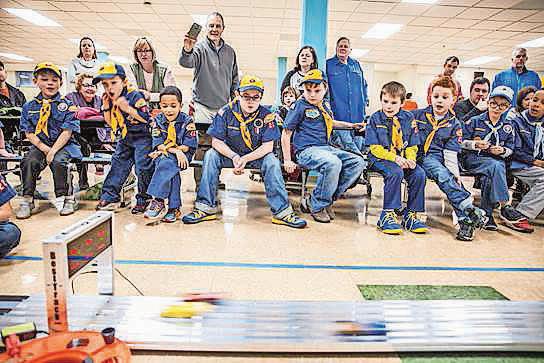 Cub Scout Pack 22 in Unionville shared some racing action on Jan. 21 during the annual Pinewood Derby Race. The young scouts worked with their parents on