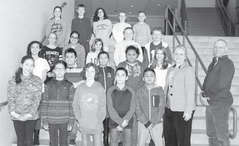 Pictured with Principal Dr. Nicole Addis and assistant principal Jason Soule, fifth grade January Students of the Month are, front row from left, Jaymie Schmitz, Andonhy Moreno, Luke Kupsey, Moises Rodriguez and Robert Ortiz Mora; second row from left, Kiara Campbell, Jesus Ibarra, Isabella Curtis, Ashley Prudoth Rodriguez and Kimberly Welch. Fifth grader Kyrstyn Johnson is not pictured. Sixth grade January Students of the Month are, third