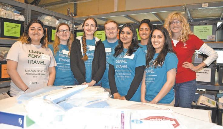 the students spent their Monday morning in West Grove, helping to package medical supplies at Project C.U.R.E., the Mid-Atlantic distribution center for the Commission on Urgent Relief and Equipment, that will eventually find their way into the hands of medical professionals throughout the world. At the same time, five other UMass students were being given ride-along tutorials by the Southern Continued on Page 4A