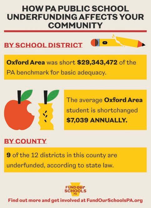 Residents in the Oxford Area School District probably understand the inherent unfairness of the state’s current education funding system better than anyone. Oxford Area School District residents pay significantly higher taxes than people who reside in neighboring school districts, yet the total funding for schools is tens of millions of dollars less than neighboring schools like Kennett, Avon Grove and Unionville-Chadds Ford. One major reason for this: During the last three