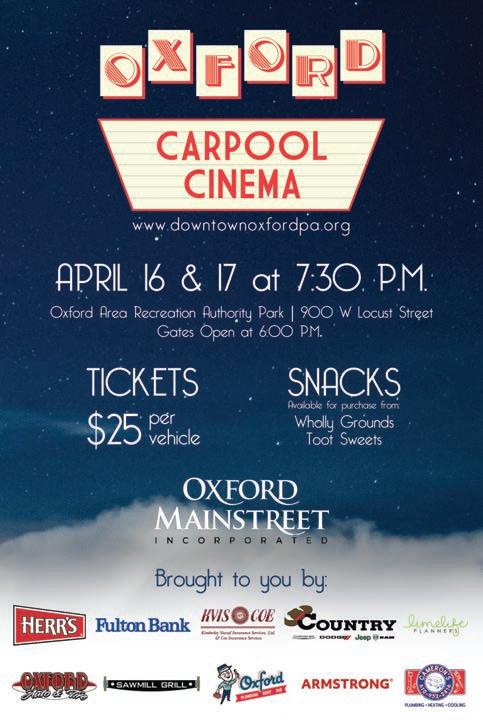 Hannum said that tickets to attend a movie are $25 per vehicle and can be purchased on the Oxford Mainstreet, Inc. website at downtownoxfordpa.org.
