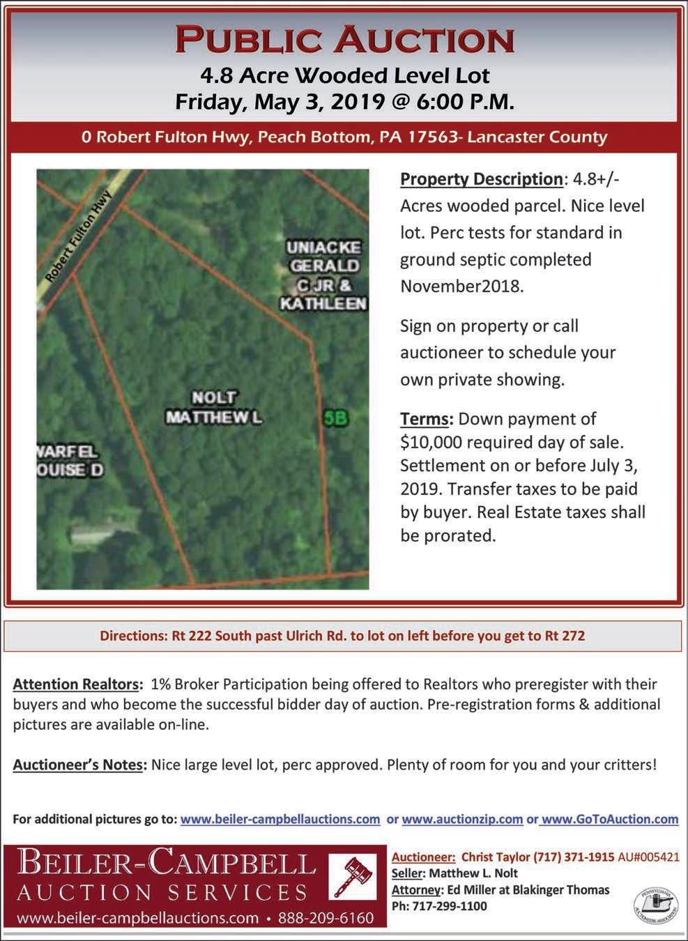 N.B. Ten percent (10%) of the purchase money must be paid at the time and place of sale. Payment must be paid in