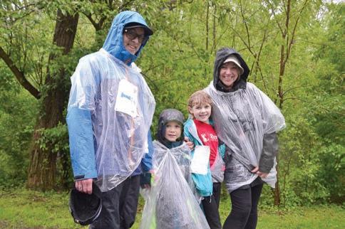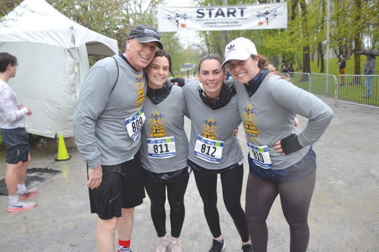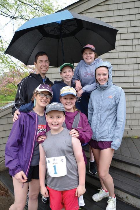 Bill Perkins and his daughters Taylor, Logan and Brett celebrate moments after crossing the finish line at the 32nd Kennett Run, held May 7 through a persistent rainstorm.