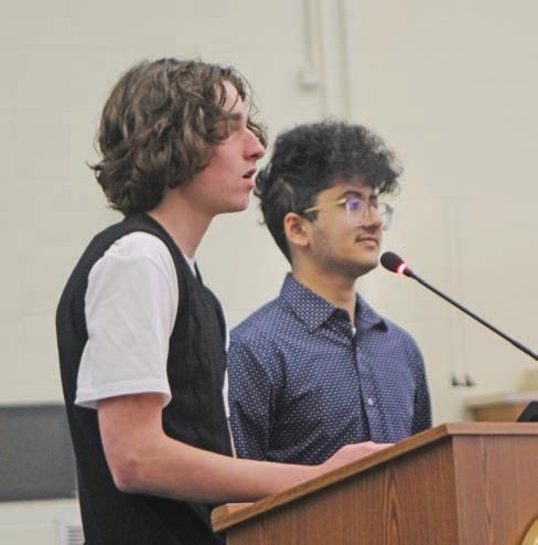 Zackary Buckwash, left, and Ibrahim Rana request permission at Kennett School Board’s May 9 school board meeting to organize an Aeviden club. The group would support students who said they were impacted by anxiety and depression.