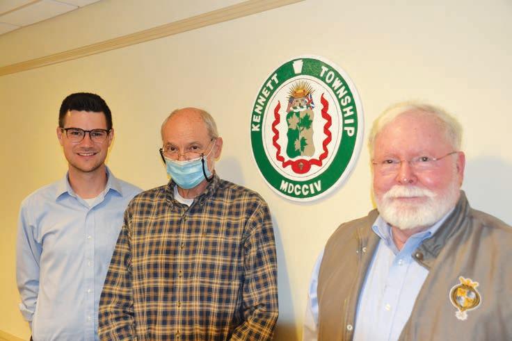 Kennett Township Supervisors Geoffrey Gamble, Scudder Stevens and township Manager Eden Ratliff stand by the new official seal that was adopted at the board’s May 18 meeting.