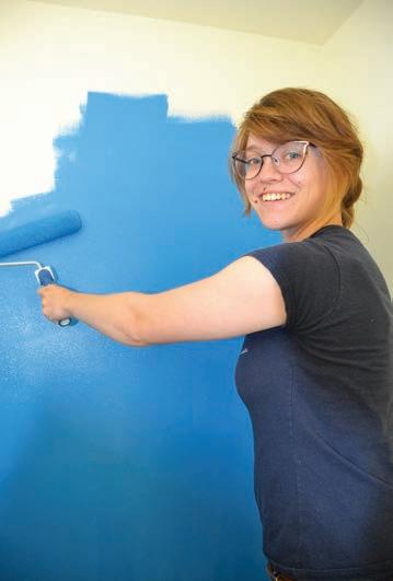 Volunteers Estella Nunez and Ariel Whaley provide a paint touch up to the Mighty Writers’ new location in Toughkenamon, which is set to open soon.