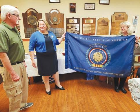 Dawn Coughlan, CCDAR Regent, presented a 50th Anniversary Vietnam War Commemorative flag to Frank Houck, president of the Vietnam Veterans of America Chapter 436.