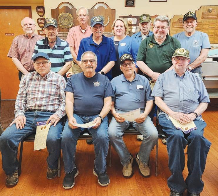 Vietnam Veterans of America Chapter 436 received commemorative pins. Pictured are (seated) Fred Mascherino, Larry Farnum, Jack Lorenzo, and Chris Pitt, and (second row) Sandy Lopacki, John Yanarella, Amy Trojanowski (CCDAR), and Jim Doedderlein, and (standing) Vince Herman, Steve Wenzel, Jack McFadden, and Denny Fenstermacher.