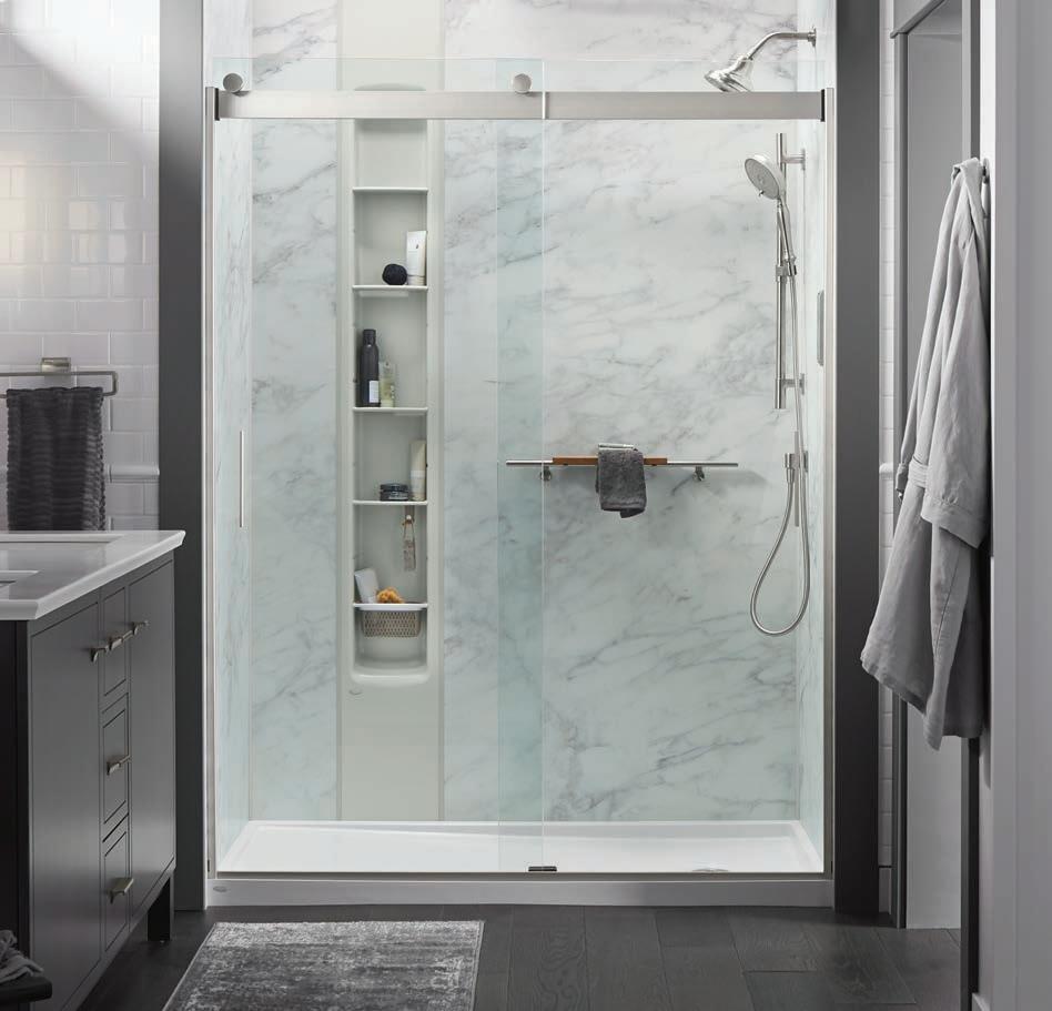 Home Smart Industries is the areas only Authorized Dealer of Kohler’s LuxStone shower wall system made of 70% real crushed marble and professionally installed at prices comparable to acrylic showers. When you have our Kohler LuxStone Design Consultants to your home for a Design Consultation, you will be given an exact, to the penny price including all labor, materials, removal, haul away, installation and permits. No surprise costs AND we honor that price for 1 year GUARANTEED.