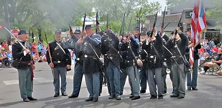 Re-enactors marched up the street in period costumes with one group firing musket shots along the way.