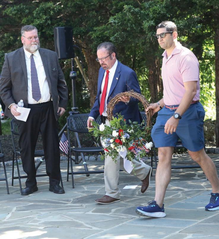 “It reminds me that serving other people is the most important thing you can do,” he concluded. He then joined Ruffini by laying a wreath on the Veterans Memorial stone in the park.