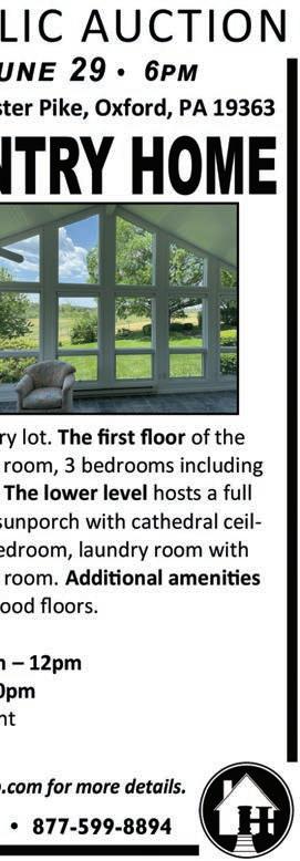 N.B. Ten percent (10%) of the purchase money must be paid at the time of the on-line sale. Payment must be made via Bid4Assets. The balance must be paid within twenty-one (21) days from the date of sale via Bid4Assets. FREDDA L. MADDOX, SHERIFF 5p-25-3t Sheriff Sale of Real Estate By virtue of the within mentioned writs directed to Sheriff Fredda L. Maddox, the hereindescribed real estate will be sold at public on-line auction via Bid4Assets, by accessing URL www.bid4assets.com/ chestercopasheriffsales, on Thursday, June 16 th , 2022 at 11AM. Notice is given to all parties in interest and claimants