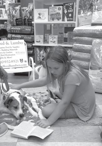Fourteen young people had a good time reading to dogs at Oxford Feed & Lumber’s first Pawsitive Reading Day of the summer on June 29. The program, which continues on consecutive Thursday mornings through Aug. 10, is a joint venture of Oxford Feed & Lumber and PAWS for People.