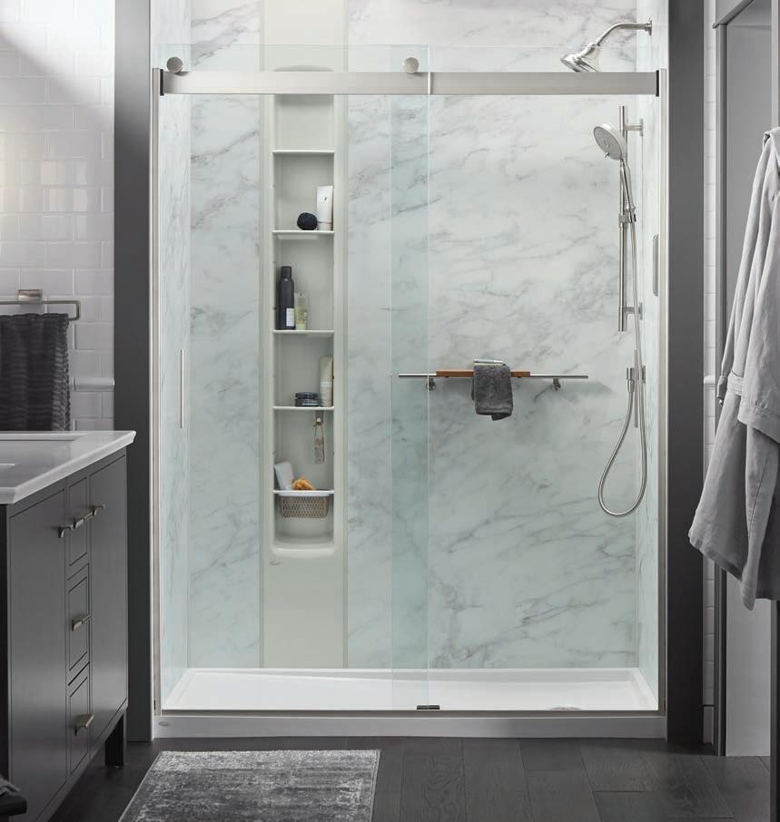 Home Smart Industries is the areas only Authorized Dealer of Kohler’s LuxStone shower wall system made of 70% real crushed marble and professionally installed at prices comparable to acrylic showers. When you have our Kohler LuxStone Design Consultants to your home for a Design Consultation, you will be given an exact, to the penny price including all labor, materials, removal, haul away, installation and permits. No surprise costs AND we honor that price for 1 year GUARANTEED.