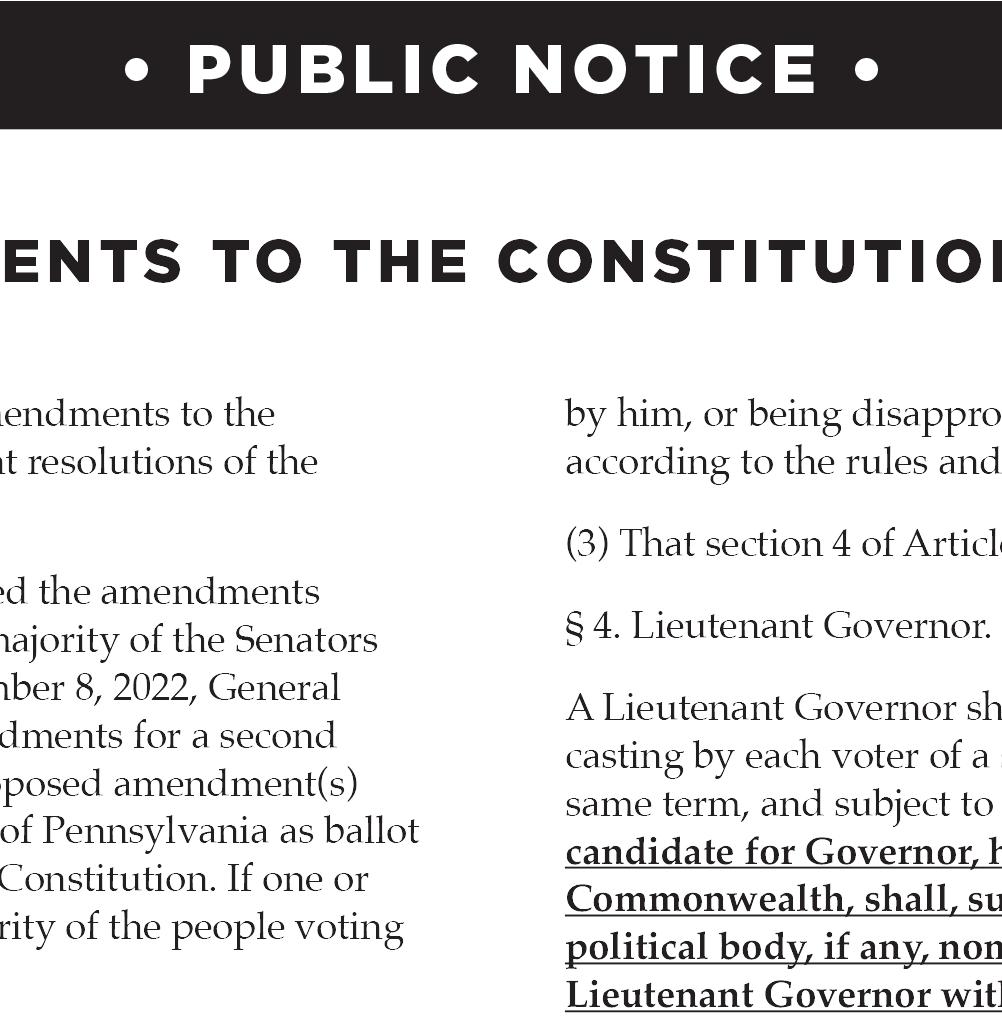 SECTION 4. Provides that the amendment shall be effective as by law provided. If you are a person with a disability wishing to attend the aforementioned meeting and require auxiliary aid, service or other accommodation to observe or participate in the proceedings, please contact the Borough (610-932-2500) to discuss how your needs may best be accommodated. OXFORD BOROUGH COUNCIL, 0GAWTHROP GREENWOOD, PC, Stacey L. Fuller, Solicitor 8p-3-1t Sheriff Sale of Real Estate By virtue of the within mentioned writs directed to Sheriff Fredda L. Maddox, the hereindescribed real estate will be sold at public on-line auction via Bid4Assets, by accessing URL www.bid4assets.com/chestercopasheriffsales, on Thursday, July 21st , 2022 at 11AM. Notice is given to all parties in interest and claimants that the Sheriff will file with the Prothonotary and in the Sheriff’s Office, both located in the Chester County Justice Center, 201 W Market Street, West Chester, Pennsylvania, Schedules of Distribution on Monday, August 22nd, 2022. Distribution will be made in accordance with the Schedules unless exceptions are filed in the Sheriff’s Office within ten (10) days thereafter.