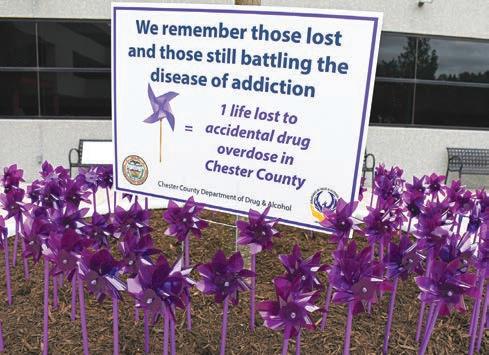 in West Chester and the West Chester Borough Building on Gay Street in West Chester, representing the 104 lives lost to accidental overdose in Chester County in 2019. In addition, citizens are invited to participate in a social media campaign in which a pinwheel graphic is shared to remember loved ones and spread awareness on that day.