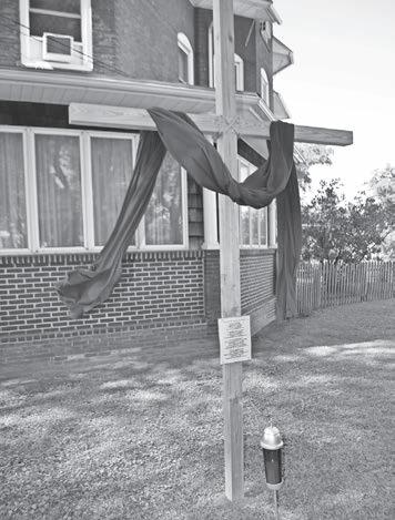 The church has placed two crosses, draped with purple cloths, directly outside the church, acknowledging the victims of sexual abuse by Catholic clergy, as stated in the grand jury report. During the Aug. 21 service, one of the crosses was moved into the church and positioned near the altar, and Rogers invited each parishioner to come to the cross and empty their emotions in front of it.