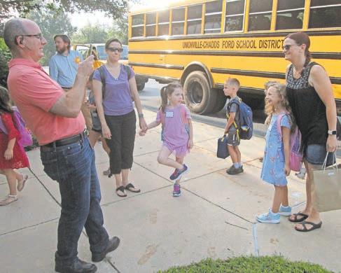 Bob Cochran of the U-CF School District was on hand to monitor the arrival of the buses on the first day, making sure there were no problems. The bus drivers smiled and said the biggest delays were caused by parents who all needed one last chance to take a photo of their students heading off to school.