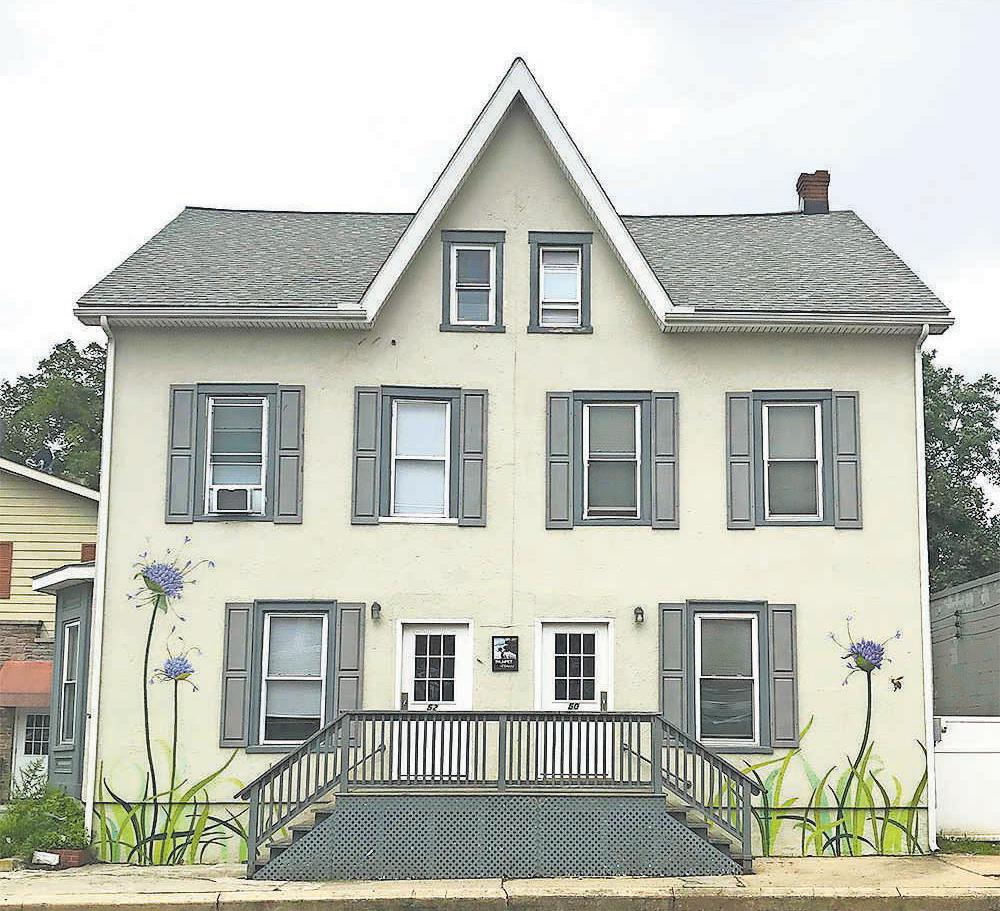 Melrath previously painted the vibrant mural on the outside wall of the Bog Turtle Brewery downtown. This new mural puts larger-than-life flowers on the front of a building.