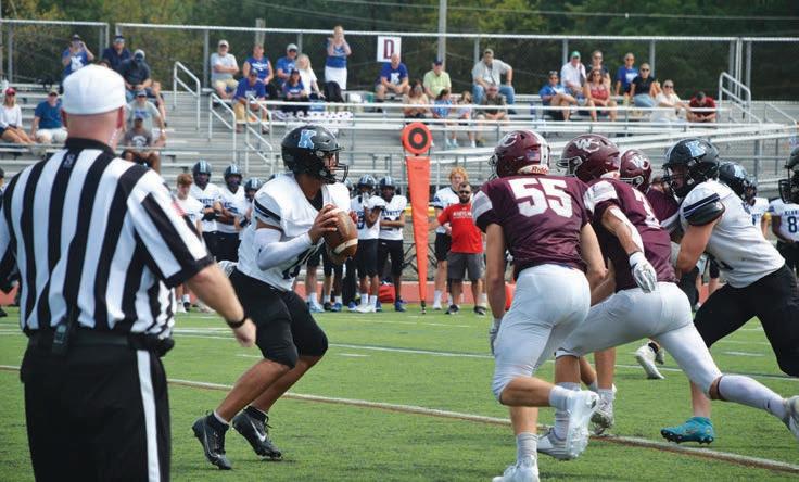 ter, defensive back Jackie Good intercepted a pass by Henderson quarterback Braeden O’Connell and took it 55 yards to the house for a go-ahead touchdown that gave the Blue Demons a 15-14 lead with just 2:15 left in the game. It was a dramatic finish to an earlyseason divisional contest, and one that now leaves Kennett (2-1 overall) undefeated in the Ches-Mont American.
