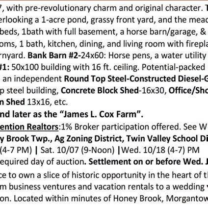 p.m. Reenactors in garb will attend. Themed food and music by a pirate band is included in the $55 admission price. Tavern games and fresh bread from the farm’s oven will be offered, along with a cash bar. Reservations are required. To reserve a seat, go to https://www.eventbrite. com/e/brandywine-battlefield-task-force-tavernnight-30-years-celebrationtickets-708552919857.