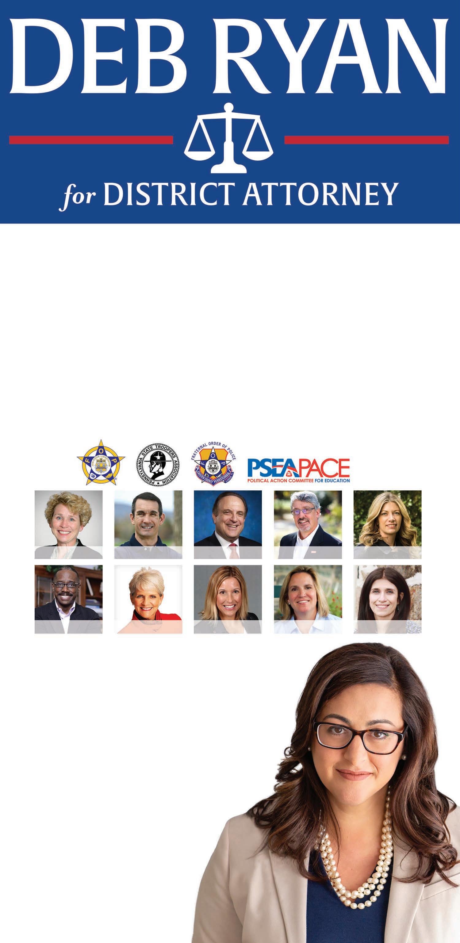 Ryan, currently the county coordinator for the Safe and Healthy Communities Initiative at the Crime Victims’ Center of Chester County, Inc., is campaigning on 15 years of experience as a criminal prosecutor. She began her career as an assistant DA at the Philadelphia District Attorney’s Office and later became Deputy District Attorney for the Chester County DA’s office.