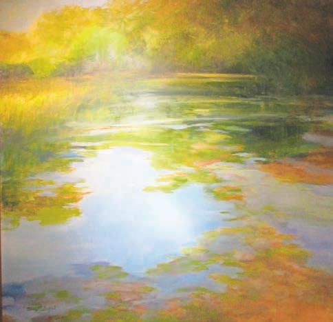 Sundberg-Hall’s “Gypsy Clouds at Sunset” has a just-right glow and a huge scale, with a sweeping cloud formation reflected in the still water of the marsh below. The interplay of sky and marsh is also featured in “Across the Pond,” which gets drama out of nature in a more subtle way.