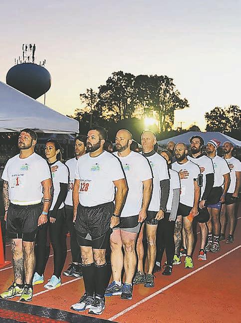 As the autumn sun first began to emerge just before the start of the first KSQ Mushroom Cap 13.1 on Oct. 15, 2016 at Kennett Stadium, about one dozen members of the Weekly Fight, a local nonprofit organization created to benefit war veterans and their families, stood still while one member held the American flag high in front of him.