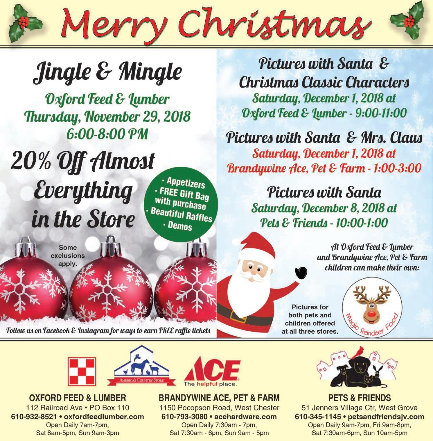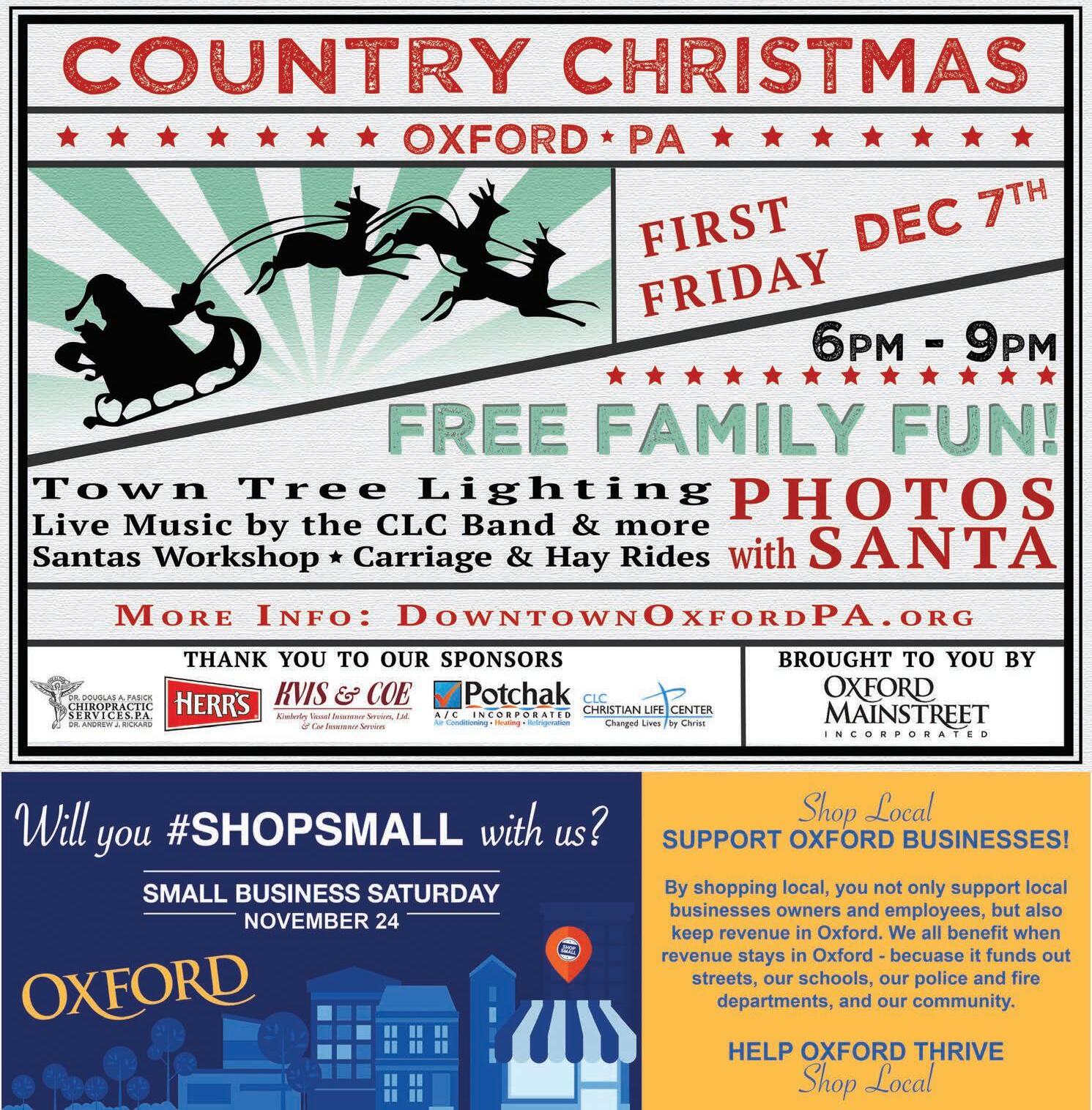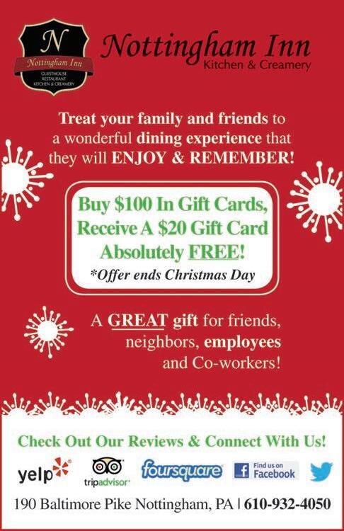 Breakfast with Santa The community is invited to a Breakfast With Santa, to be held Dec. 1 from 8:30 to 11:30 a.m. at St. Christopher’s Episcopal Church (116 Lancaster Pike, Oxford). Breakfast items will include pancakes, sausage, fruit and beverages. Tickets are $15 for adults (breakfast and photo with Santa), $10 for adults (breakfast only), and $5 for chidlren. Children under 2 are free. The maximum charge is $40 per family. Photos will be printed before guests leave. There will be supercvised holiday arts and craft projects for children during the event.