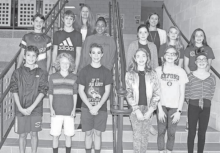 top left, and Assistant Principal Kristen Chastain, Penn’s Grove School seventh grade Students of the Month for September are, front from left, Aidan Eller, Natalia Donofrio, Ryan Owens, Spencer Lewis, Abigail Bufaro and Yareli Hernandez