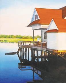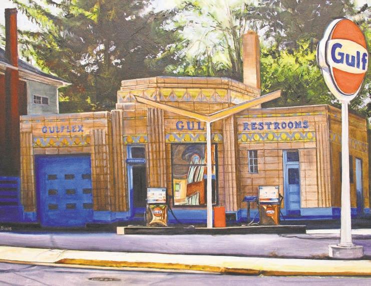 It’s fun to spot the places you recognize in her works –the Kuerner Farm in “Fresh Warm Air,” for instance – but you’ll also discover an amazing vintage gas station (“Art Deco Gulf”) and a snowy side street (“Teal House in Snow”).