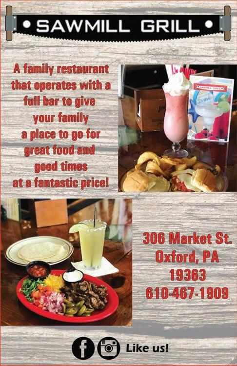 Community breakfast Oxford United Methodist church (18 Addison St., Oxford) holds a community buffet breakfast on Nov. 24 from 7 to 10 a.m. The menu includes buttermilk pancakes, scrambled eggs, sausage and bacon, roasted potatoes, specialty breads and more. Tickets at the door are $7 for adults and $3 for ages 3 to 10. Call 610-932-9698 for more information. Dec. 1