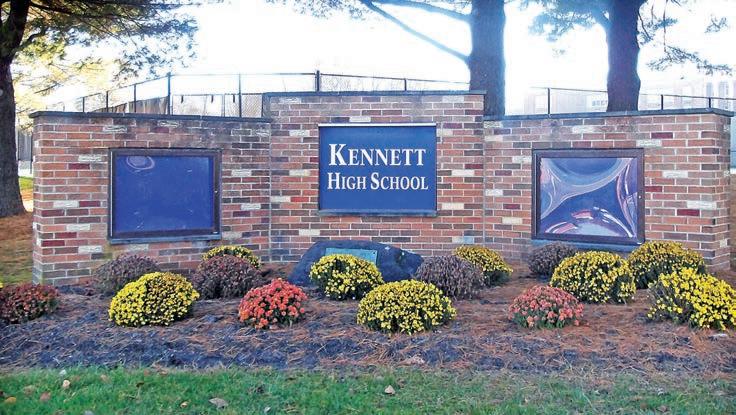 “Kennett High School.” The surrounding two blocks are empty, but in some instances have announced upcoming events or other messages.