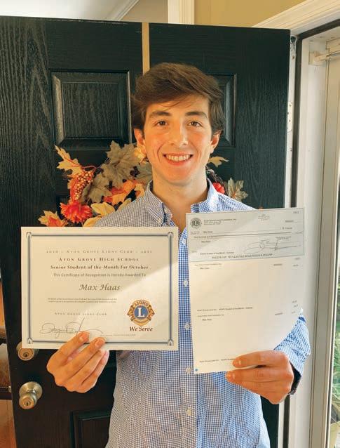Max Haas has been named the Avon Grove Lions Club Student of the Month for October. He is the son of James and Vicky Haas of Avondale.