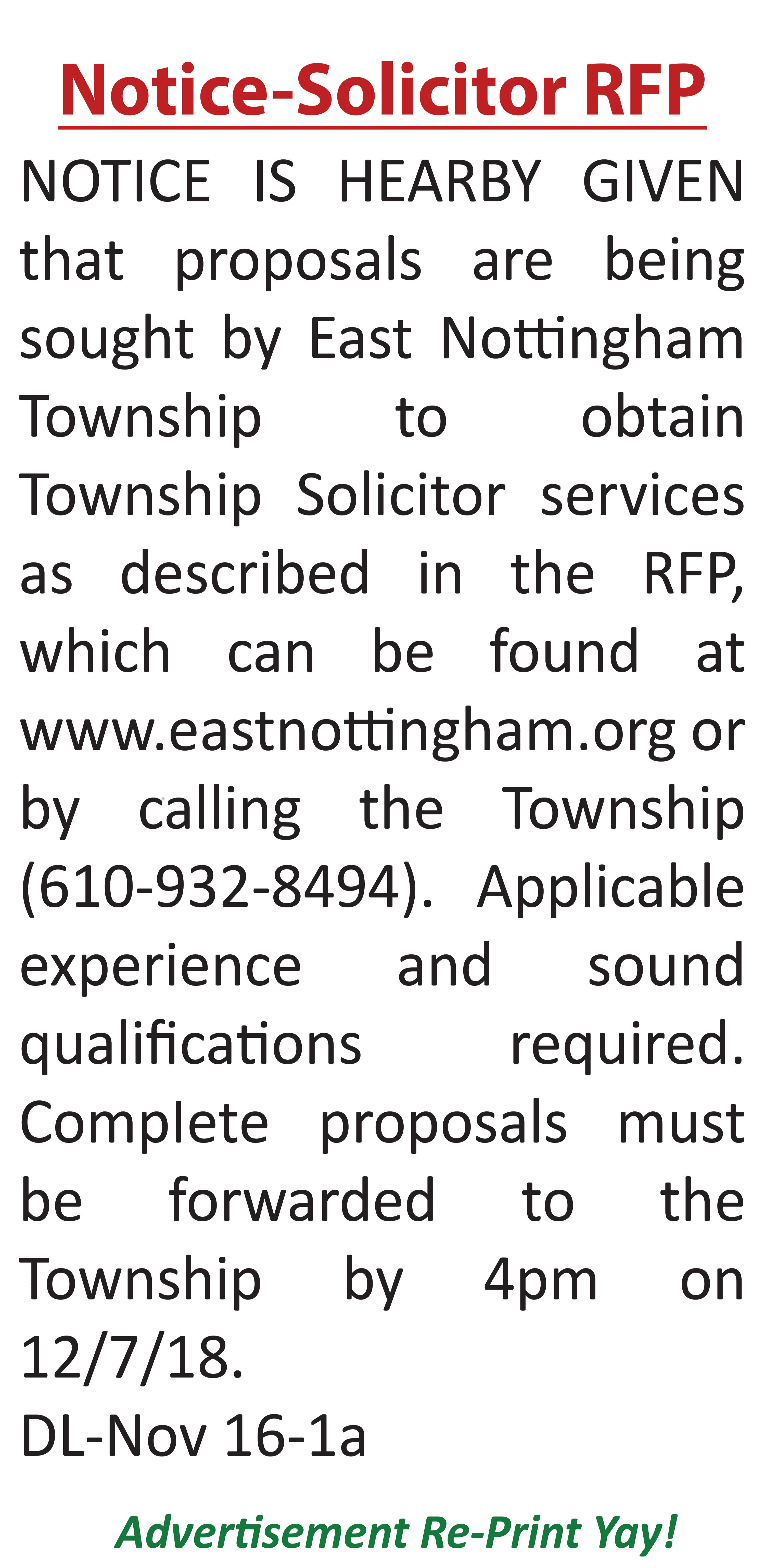 NOTICE It is the intent of the Board of Supervisors of Penn Township, Chester County, PA, to continue the appointment of Ronald R. Woodworth, Certified Public Accountant to audit the books per Resolution 2000-01 for the year of 2018. BY THE ORDER of the Penn Township Board of Supervisors, 260 Lewis Road, West Grove, PA., Caitlin