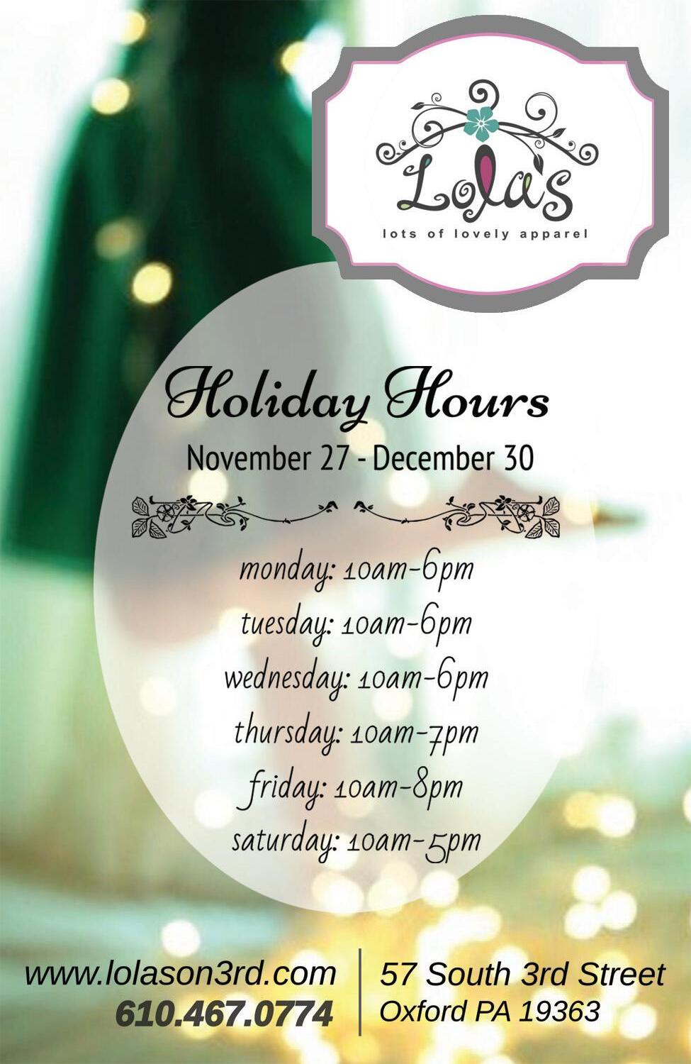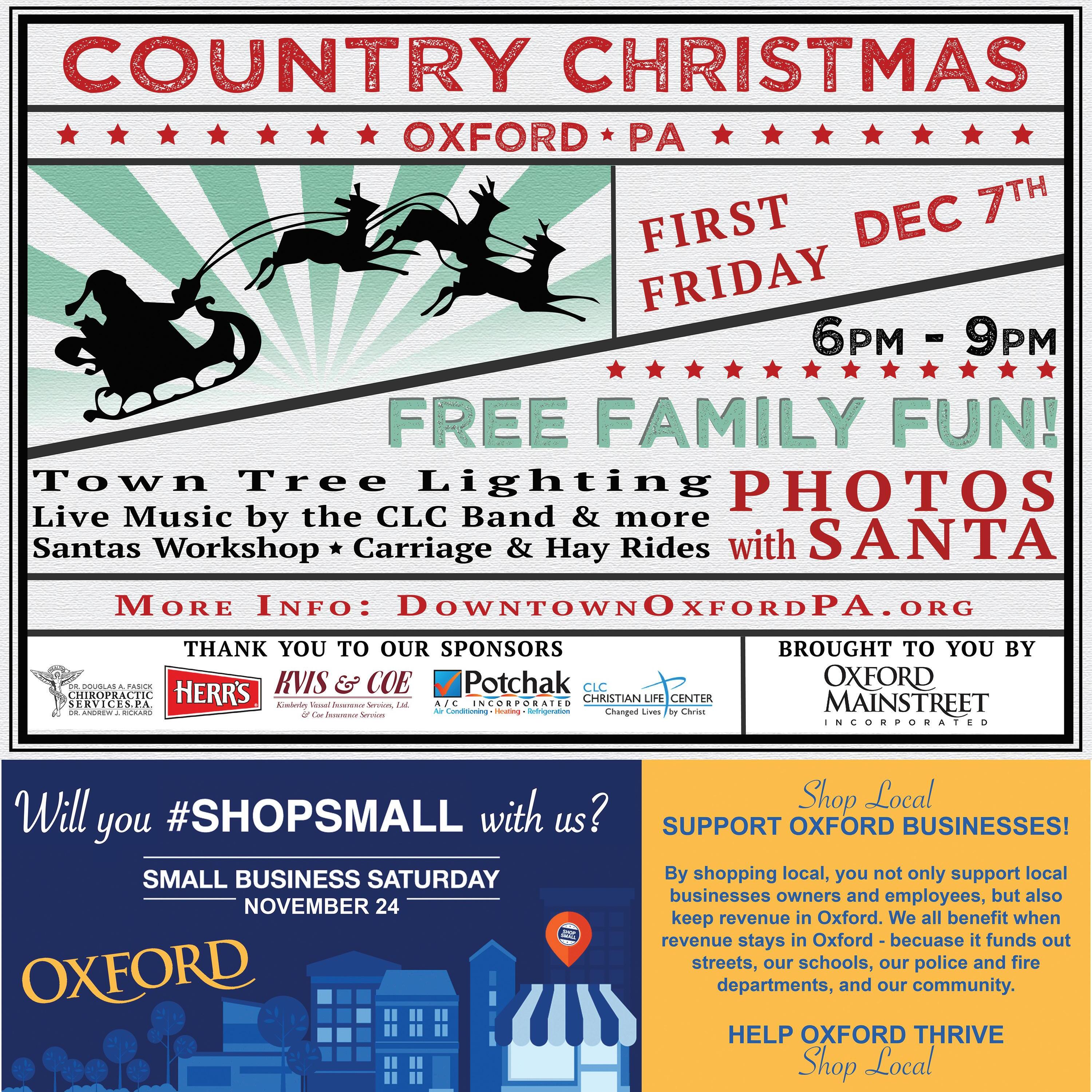 The Artisan Gift Shops are open through Dec. 22 at both downtown locations. Hours are Tuesday through Saturday from 10 a.m. to 6 p.m., with extended hours on Fridays until 8 p.m. Call 610-467-0301 or visit www.oxfordart.org for more information.