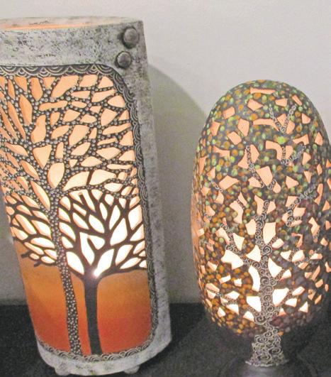 There are adorable felted figures by Alyce Templeton, and her Nativity sets are both simple and evocative, as are her three tiny Wise Men. Ki Crittenden’s always impressive lighted ceramics would be a great centerpiece gift for someone special, or for yourself. Everyone gets into the act at this show, including a teen crafter who shows her work, including painted round ornaments that get the essence of Charlie Brown. There are handmade greeting cards for every occasion by Clarissa Sherrow, and Rosalie Wells has a terrific line of Frida Kahlo-inspired