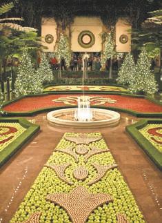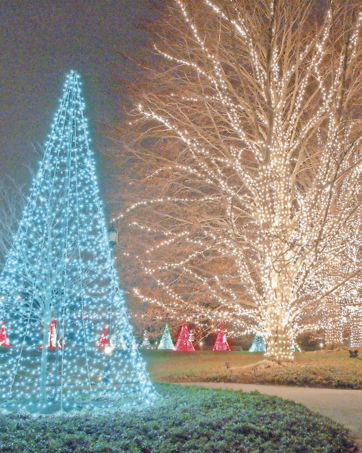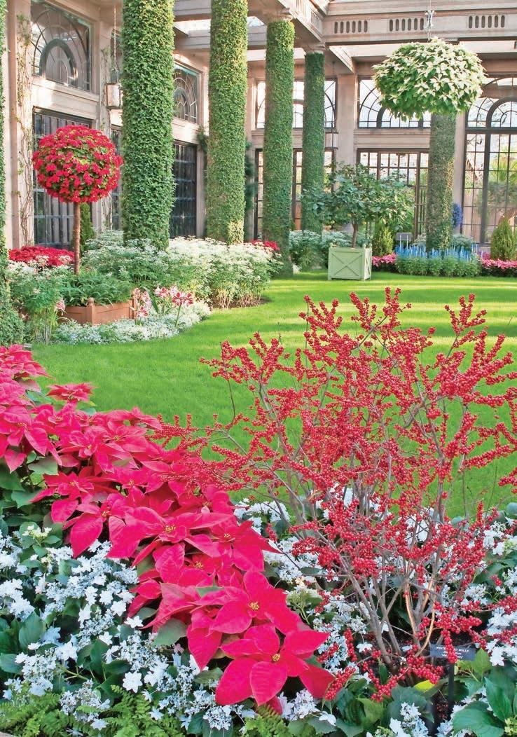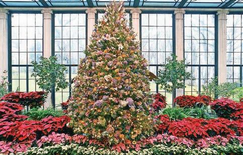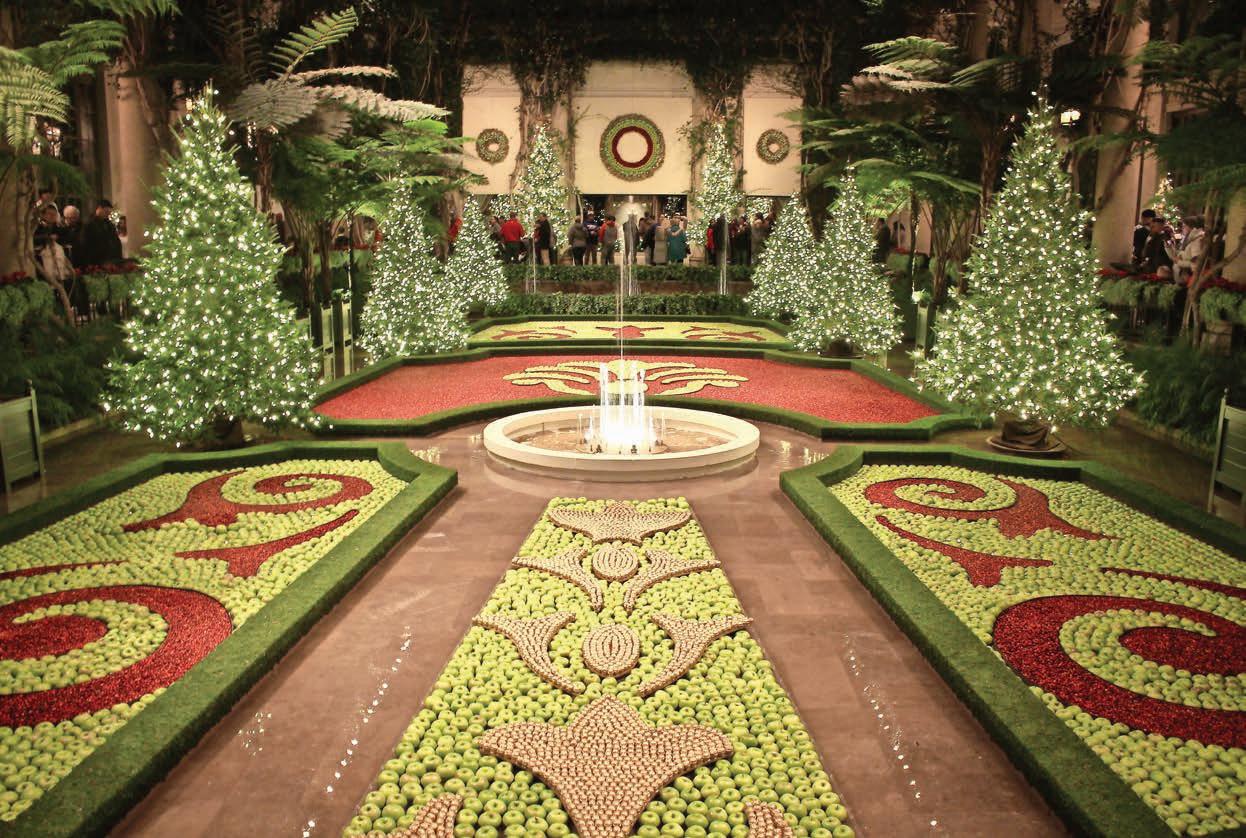 This year’s holiday extravaganza at Longwood Gardens has a French accent. The French-inspired holiday display in the four-acre Conservatory has fanciful topiary and more than 50 trees with sparkling crystal ornaments reminiscent of the splendor of Versailles. Outside, illuminated stars twinkle above, colorful fountains dance to holiday music, and half a million lights brighten the night. Inside Longwood’s Conservatory are 16,000 seasonal plants, including poinsettias, cyclamen and anthurium. In the Exhibition Hall, an array of floating cranberries and apples are set in intricate, swirling botanical patterns, creating a carpet of color. The Music Room will transport guests to Versailles with its ornate and a mirrored dining table set for Christmas Eve dinner. Upon entering the Conservatory, guests will encounter a 25-foot-tall concolor fir garnished with blue, copper and gilded ornaments amid a topiary border. Throughout the season, Longwood’s Ballroom will feature free and ticketed holiday-inspired performances as well as daily holiday sing-alongs performed on Longwood’s pipe organ. The Strolling Olde Towne Carolers add to the holiday charm on select evenings. The lineup includes: